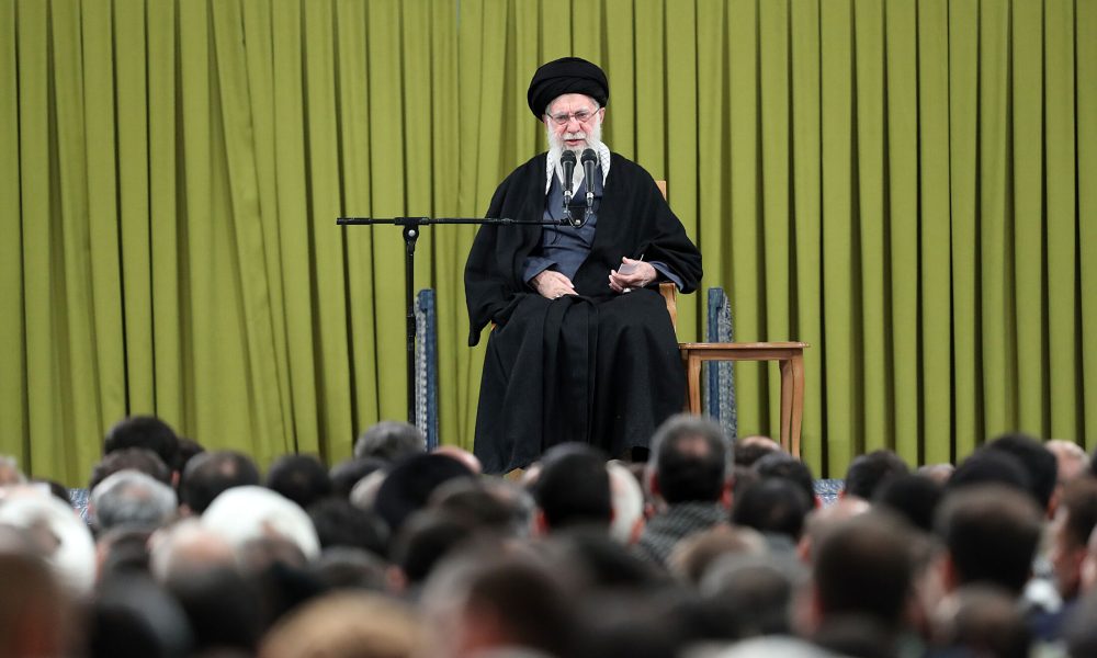 حضرت آیتالله خامنهای همچنین تلاش آمریکا برای بلعیدن ایران و ایستادگی ملت رشید در مقابل این طمعورزی را علت اصلی تقابل ۴۷ ساله ایران و آمریکا برشمردند و با اشاره به حرفهای اخیر آمریکاییها، افزودند: آنها قبلاً هم برای ترساندن ملت ایران، میگفتند «همه گزینهها روی میز است» و البته بدانند که اگر این بار جنگی راه بیندازند، «جنگی منطقهای» خواهد شد.